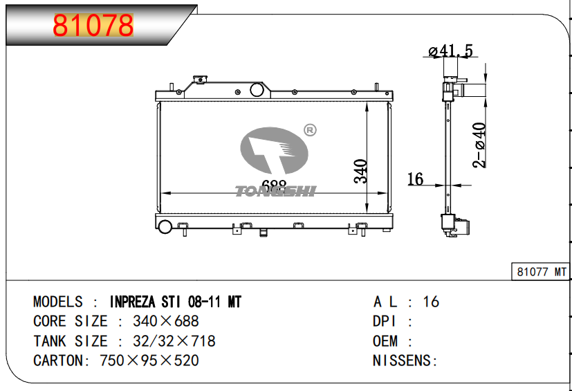 适用于沃尔沃V40 1.9TD D4192T 95- MT散热器