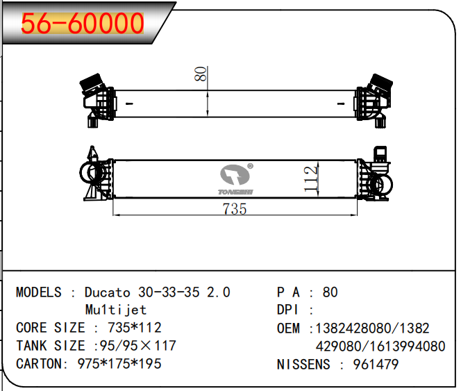 适用于沃尔沃V40 1.9TD D4192T 95- MT散热器