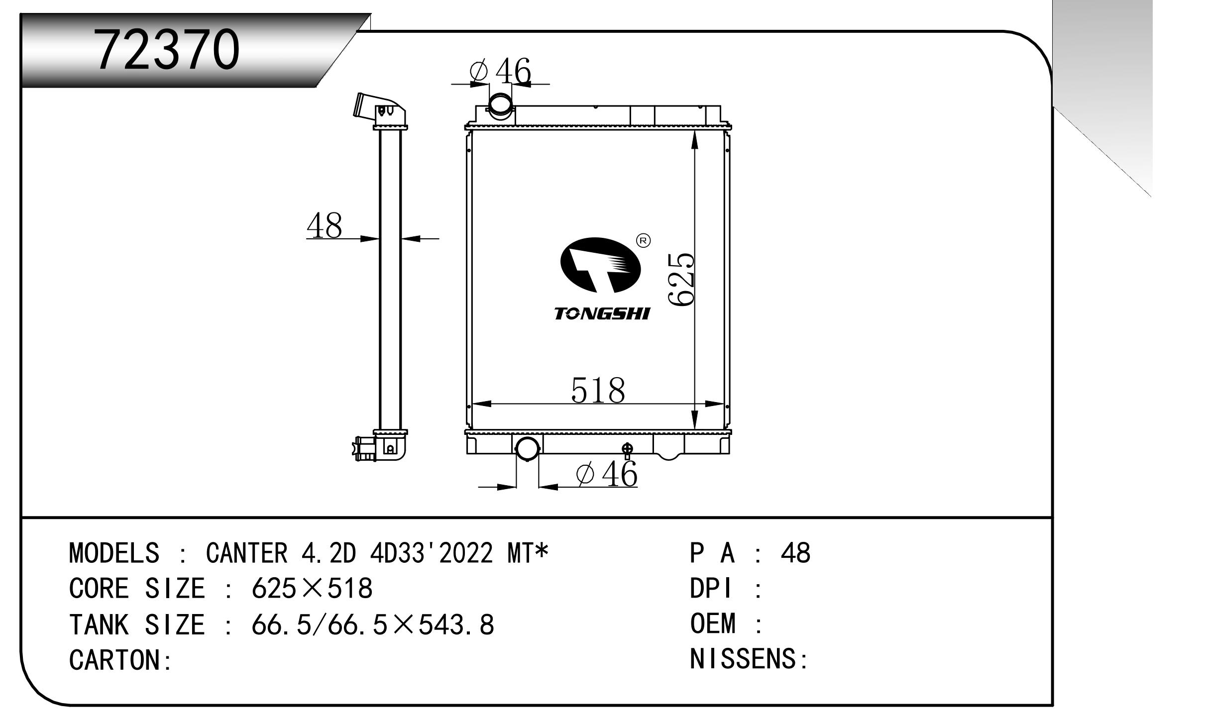 适用于FREIGHTLINER CASCADIA 125/ 113 L6 12.8L 12-13 AT散热器