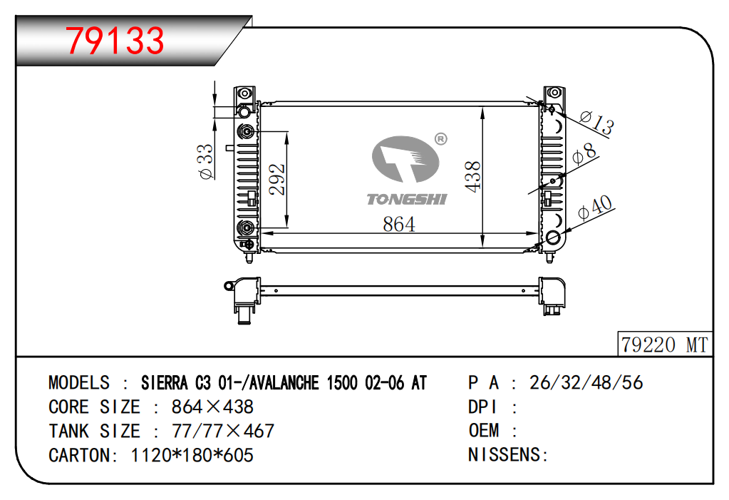 适用于奇瑞瑞虎(新款)?MT散热器