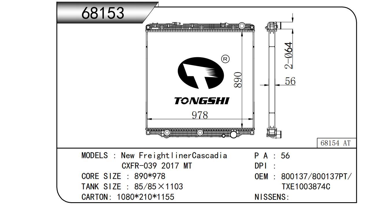 适用于FREIGHTLINER CASCADIA 125/ 113 L6 12.8L 12-13 AT散热器