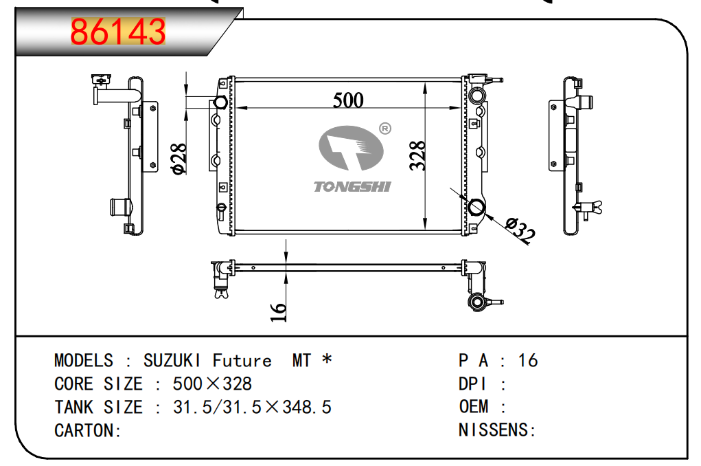 适用于宝马E30 320 i 82-93 AT散热器