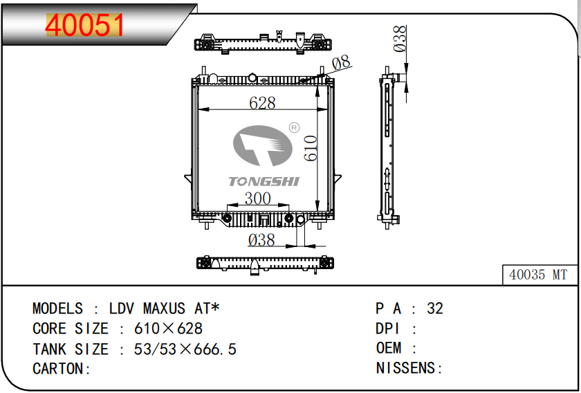 适用于沃尔沃V40 1.9TD D4192T 95- MT散热器