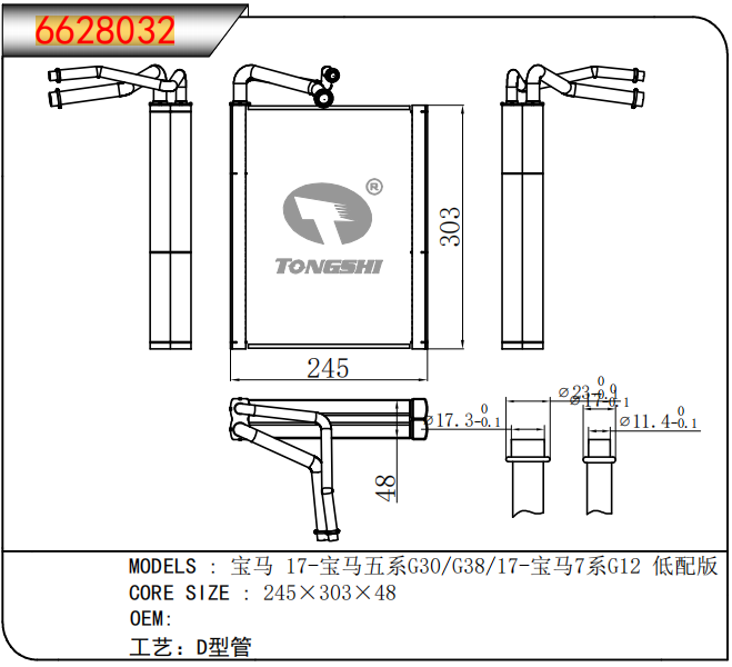 适用于宝马E30 320 i 82-93 AT散热器