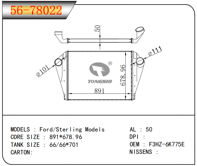 适用于FREIGHTLINER CASCADIA 125/ 113 L6 12.8L 12-13 AT散热器