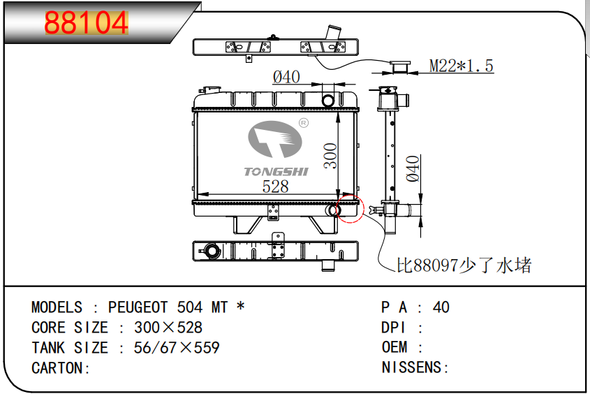 适用于沃尔沃V40 1.9TD D4192T 95- MT散热器