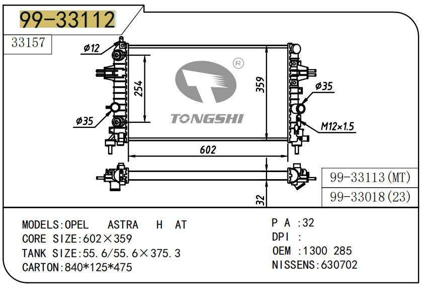 适用于沃尔沃V40 1.9TD D4192T 95- MT散热器