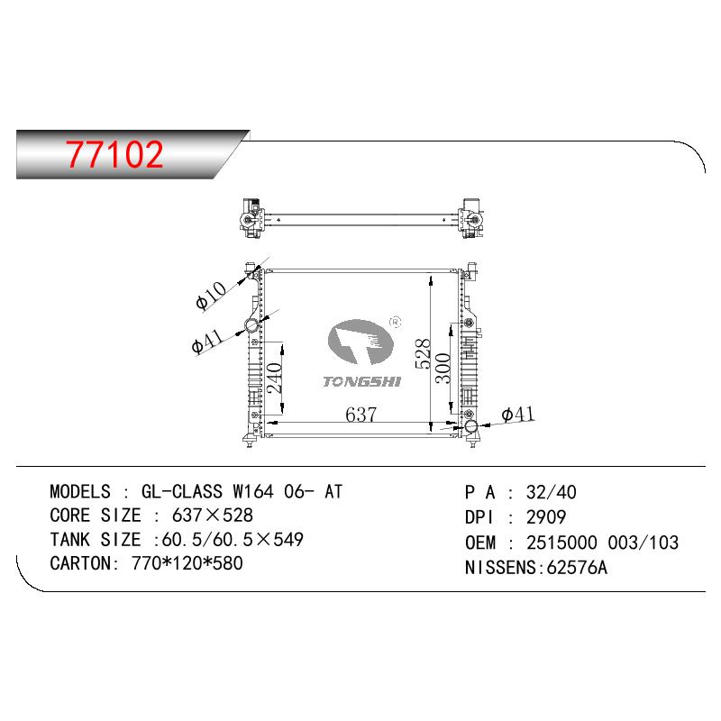 适用于奔驰 GL-CLASS W164 06- AT散热器 OEM : 2515000 003/103