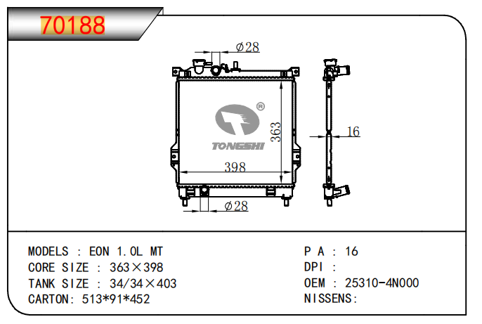 适用于宝马E30 320 i 82-93 AT散热器