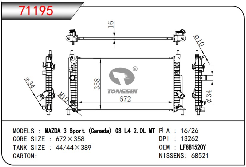 适用于沃尔沃V40 1.9TD D4192T 95- MT散热器