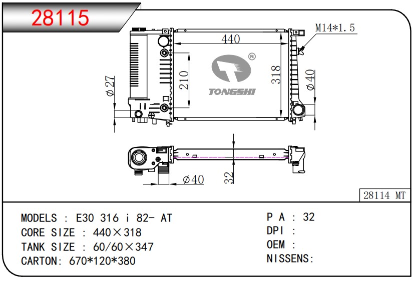适用于宝马E30 320 i 82-93 AT散热器