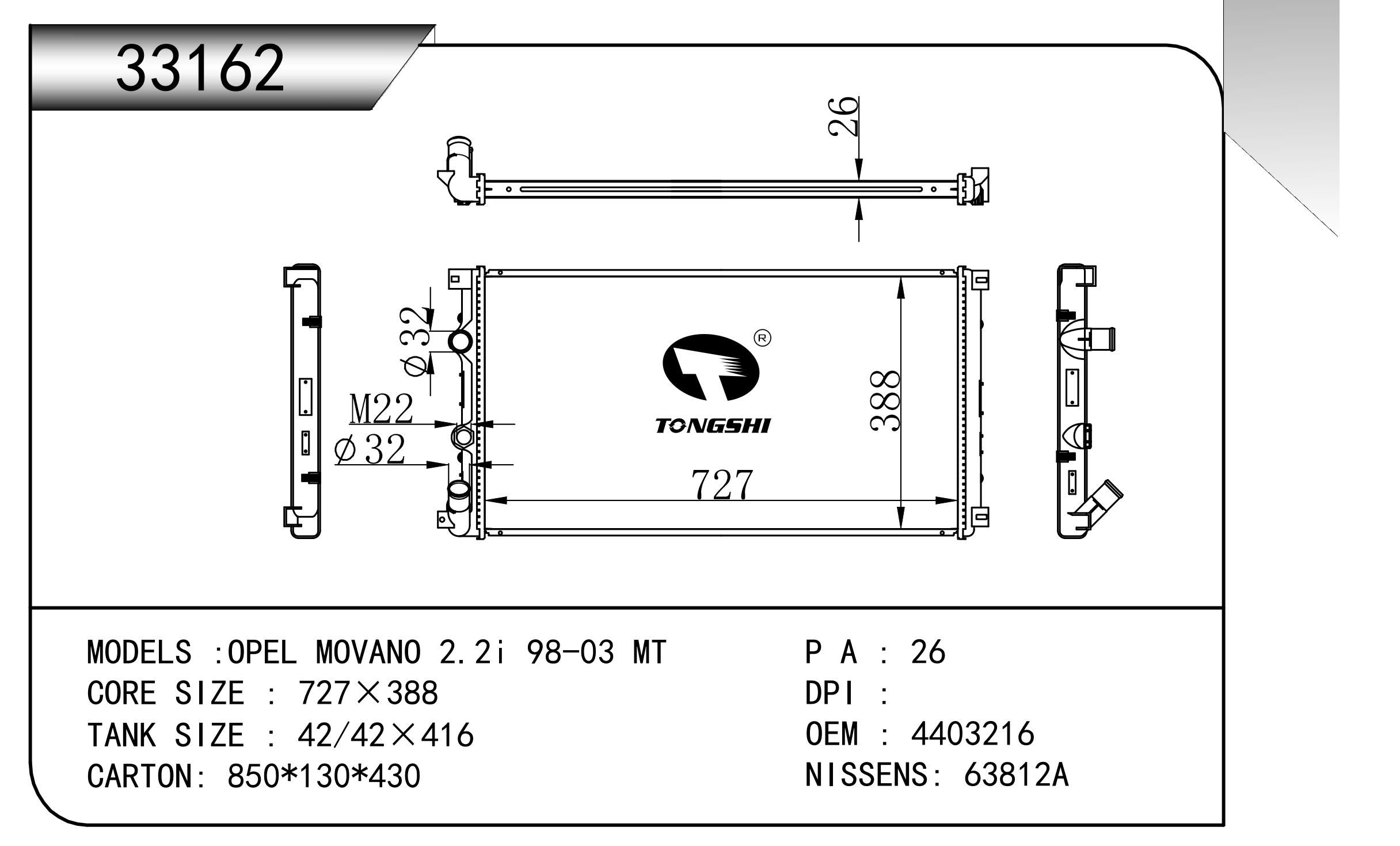 适用于沃尔沃V40 1.9TD D4192T 95- MT散热器