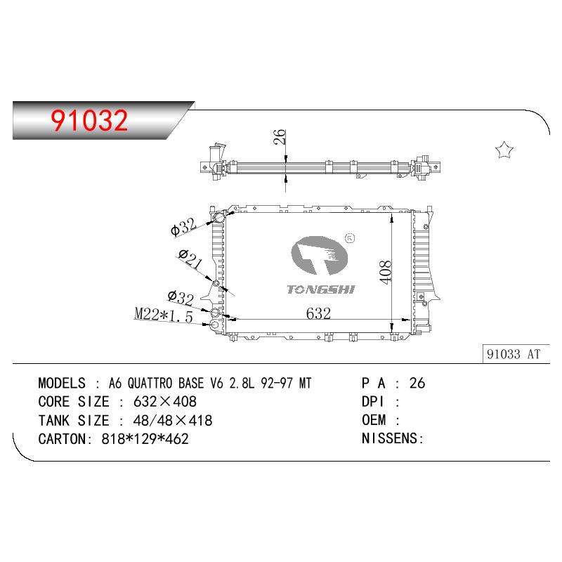 适用于AUDI A6 QUATTRO BASE V6 2.8L OEM:4A0121251/4A0121251A/4A0121251AD/4A0121251D/4A0121251E/4A0121251N/4A0.121.251A