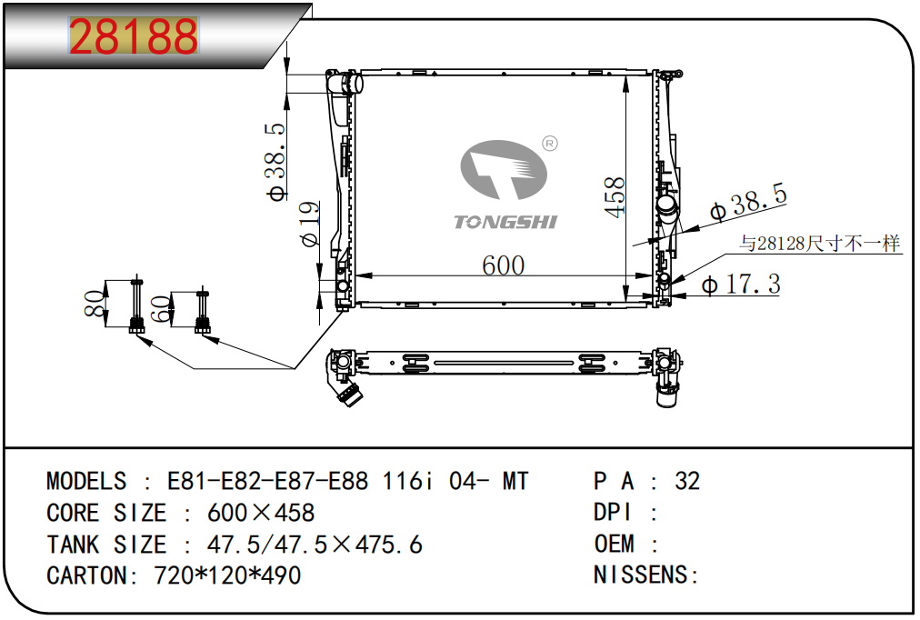 适用于宝马E30 320 i 82-93 AT散热器