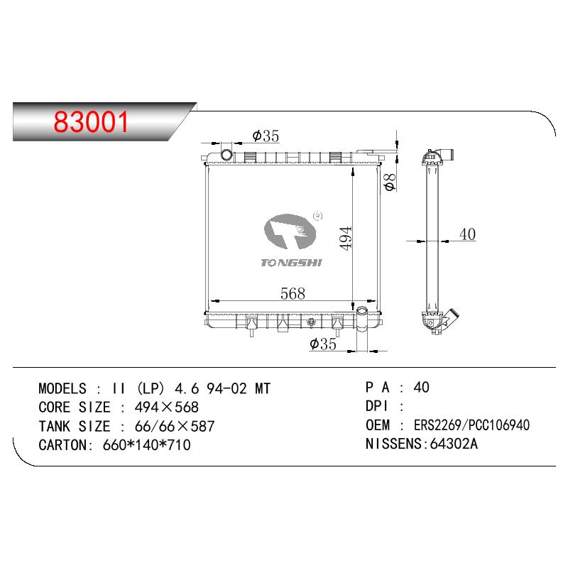 适用于沃尔沃V40 1.9TD D4192T 95- MT散热器