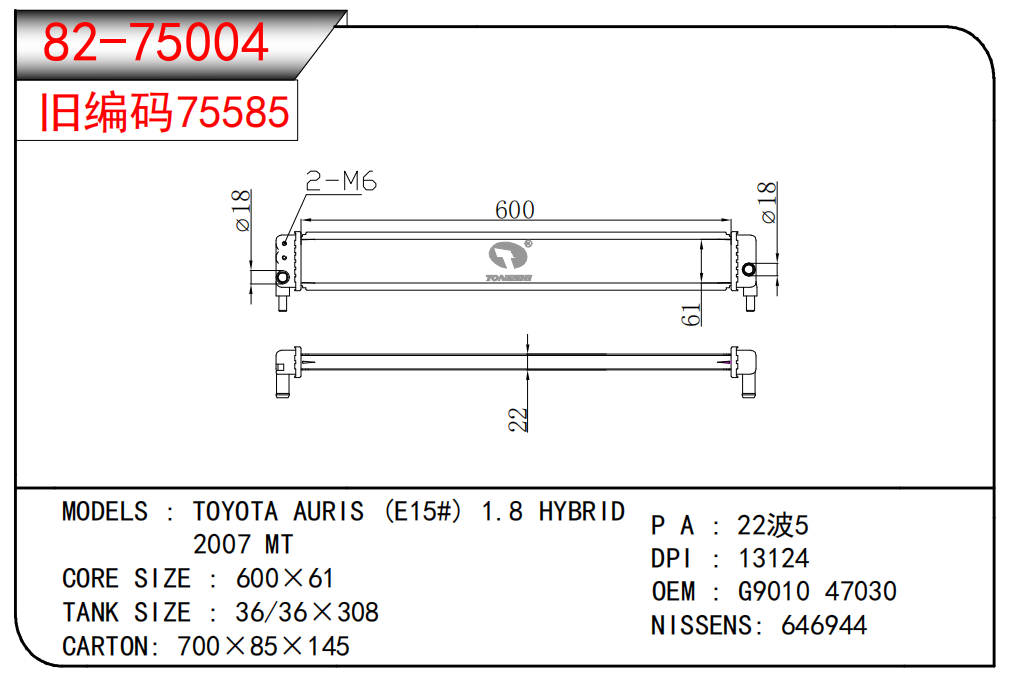 适用于沃尔沃V40 1.9TD D4192T 95- MT散热器