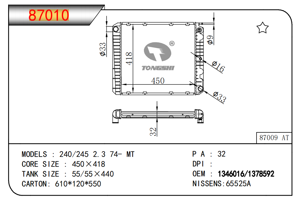 适用于沃尔沃V40 1.9TD D4192T 95- MT散热器