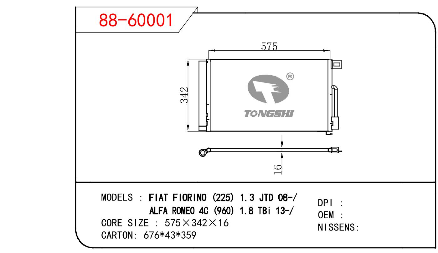 适用于菲亚特 FIORINO (225) 1.3 JTD 08-/ALFA ROMEO 4C (960)1.8 TBI 13-/冷凝器 OEM:1850119/55700406/6455.GA