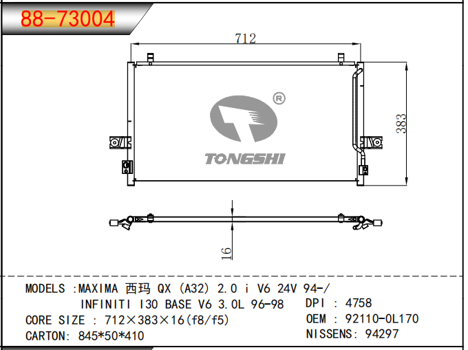 适用于沃尔沃V40 1.9TD D4192T 95- MT散热器