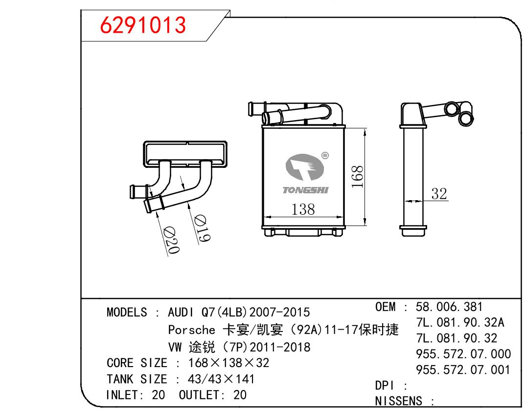 • 芯体尺寸:168*138*32