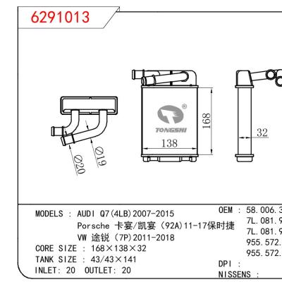 • AUDI Q7(4LB)2007-2015/Porsche 卡宴/凯宴(92A)11-17保时捷/VW 途锐(7P)2011-2018
