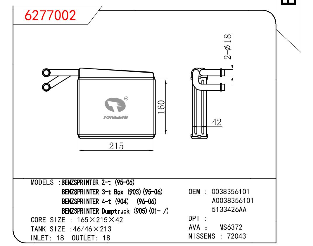 适用于奔驰凌特 2-T 95-06/凌特 3T BOX 903 95-06/凌特 4T 904 96-06/凌特 DUMPTRUCK 905 01-暖风
