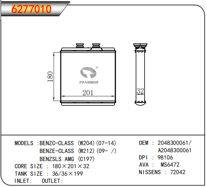 • 芯体尺寸:180×201×32