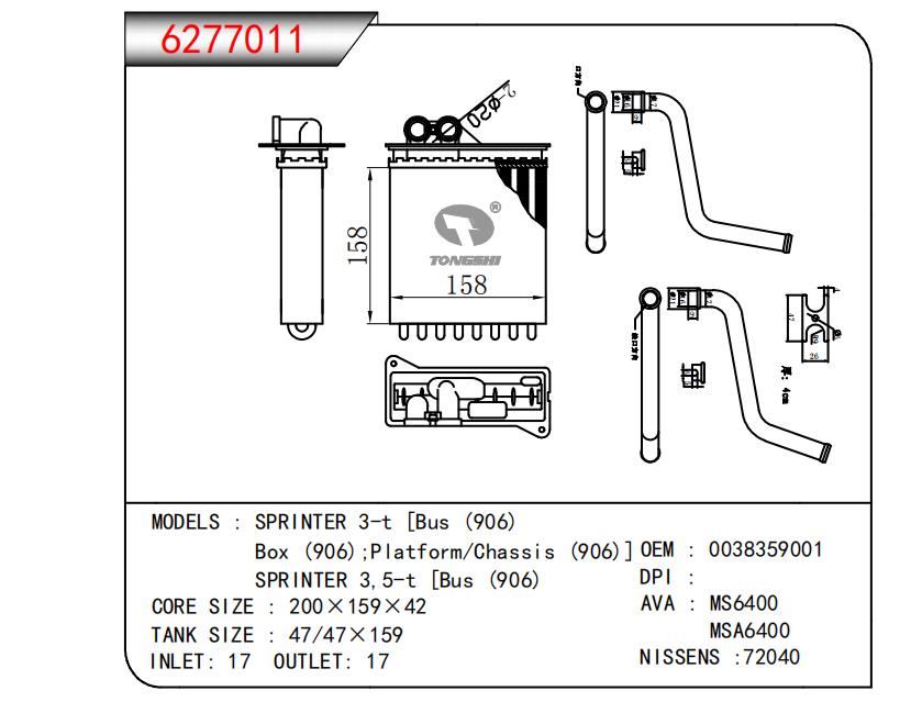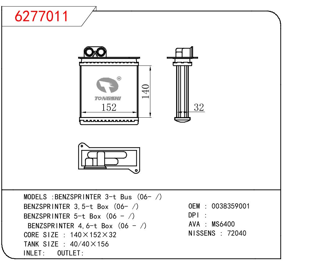 适用于BENZ BENZSPRINTER 3-T BUS 06-/BENZSPRINTER 3.5-T BOX 06-/BENZSPRINTER 5-T BOX 06-/BENZSPRINTER 4.6-T BOX 06- OEM:0038359001