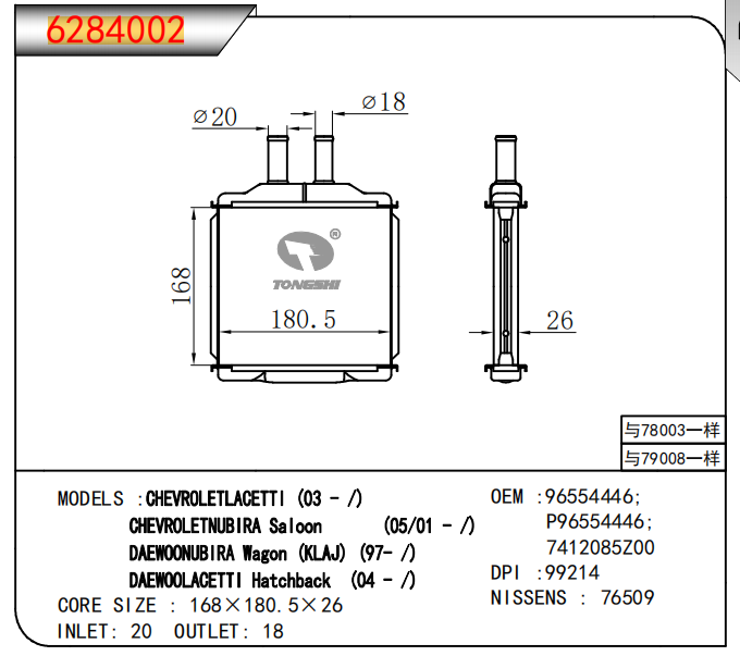 • 雪佛兰?LACETTI(03-/)?雪佛兰?NUBIRA?Saloon(05/01-/)?大宇?NUBIRA?Wagon(KLAJ)(97-?/)?大宇?LACETTI?Hatchback(04-/)