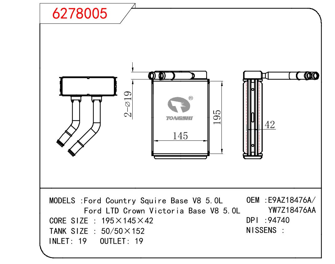 适用于FORD Ford Country Squire Base V8 5.0L/Ford LTD Crown Victoria Base V8 5.0L OEM:E9AZ18476A/YW7Z18476AA
