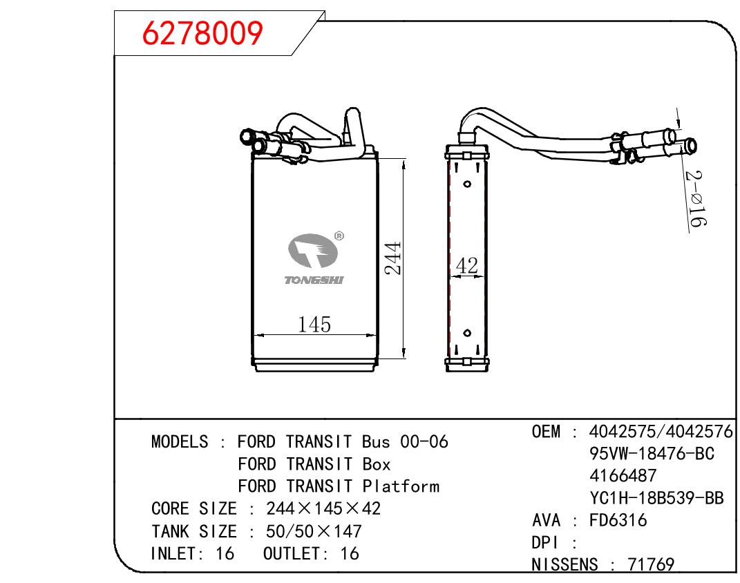 适用于FORD FORD TRANSIT BUS 00-06/FORD TRANSIT BOX/FORD TRANSIT PLATFORM OEM:4042575/4042576/95VW-18476-BC/4166487/YC1H-18B539-BB