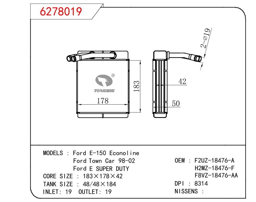 • 芯体尺寸:183*178*42