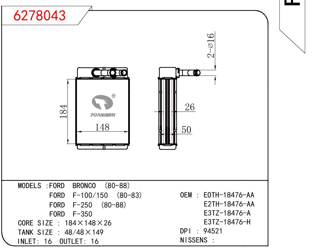 • 芯体尺寸:184*148*26