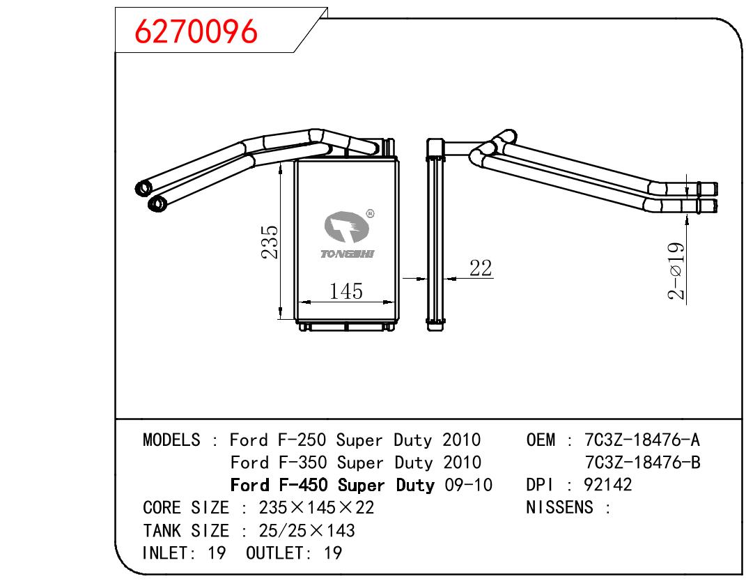适用于FORD Ford F-250 Super Duty 2010/Ford F-350 Super Duty 2010/Ford F-450 Super Duty 09-10 OEM:7C3Z-18476-A/7C3Z-18476-B