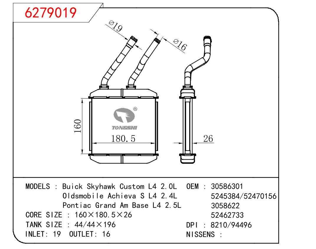 适用于别克Skyhawk Custom L4 2.0L/奥兹莫比尔Achieva S L4 2.4L/庞蒂克Grand Am Base L4 2.5L 暖风