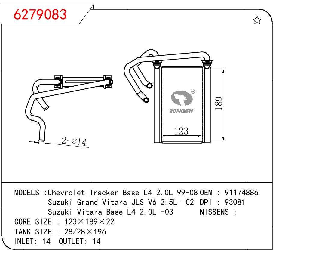 适用于GM DODGE Chevrolet Tracker Base L4 2.0L 99-08/Suzuki Grand Vitara JLS V6 2.5L -02/Suzuki Vitara Base L4 2.0L -03 OEM:91174886