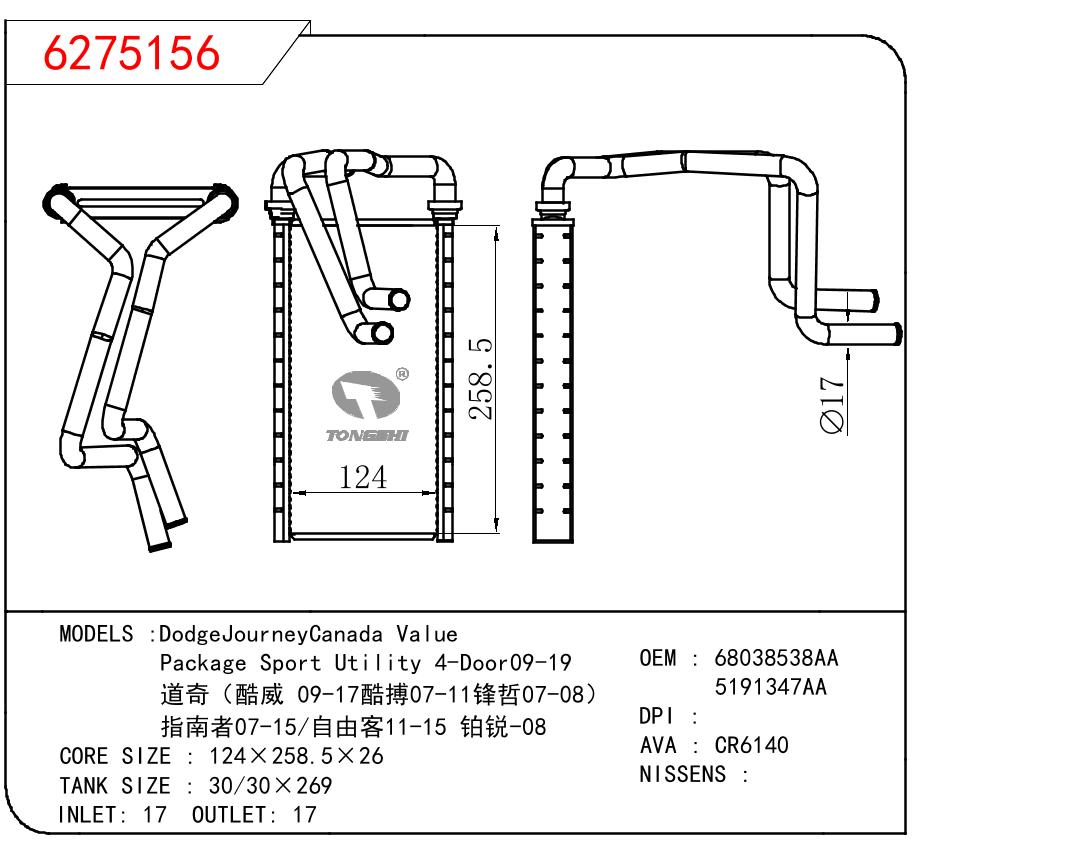 适用于GM?DODGE?DodgeJourneyCanada?Value/Package?Sport?Utility?4-Door09-19/道奇(酷威?09-17酷搏07-11锋哲07-08)/指南者07-15/自由客11-15?铂锐-08?OEM:68038538AA/5191347AA