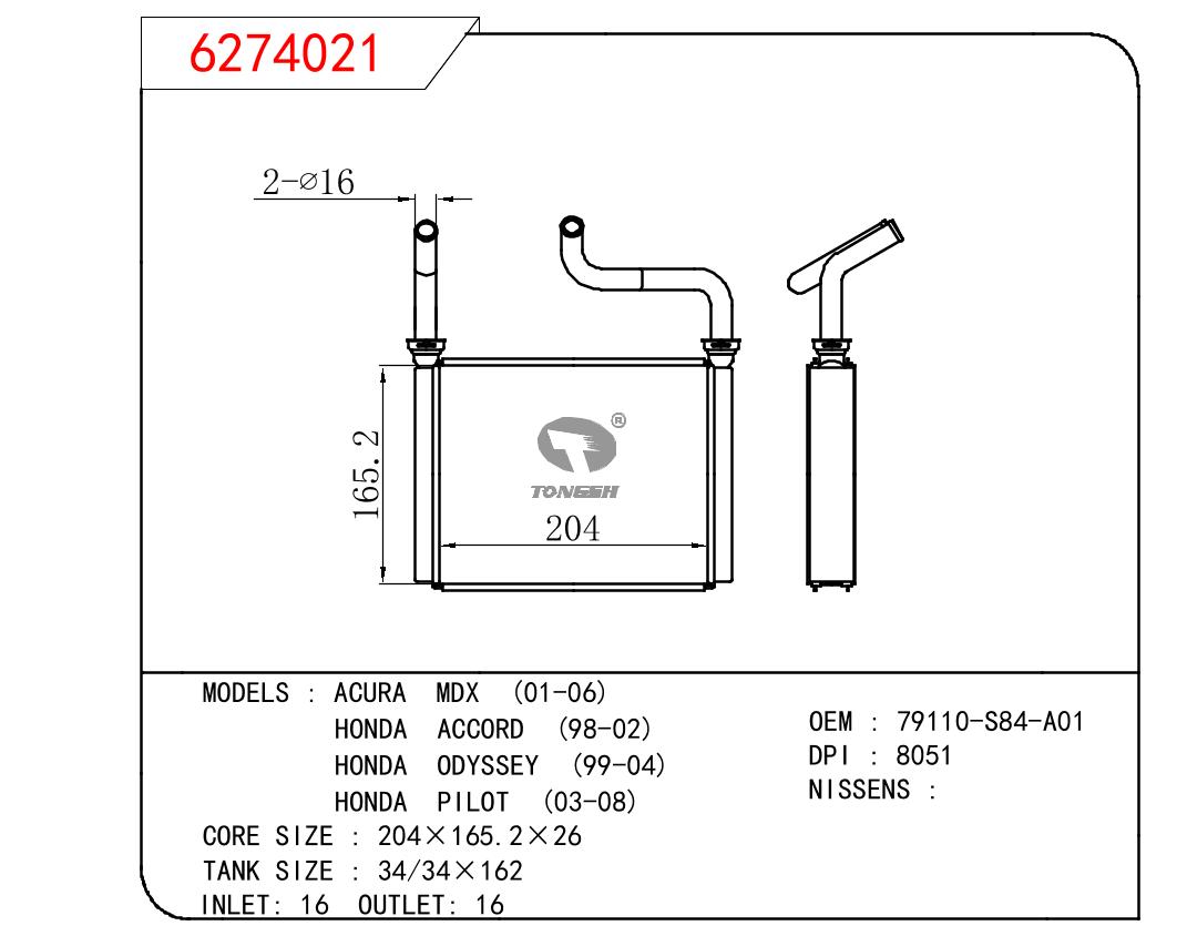 • 芯体尺寸:204*165.2*26