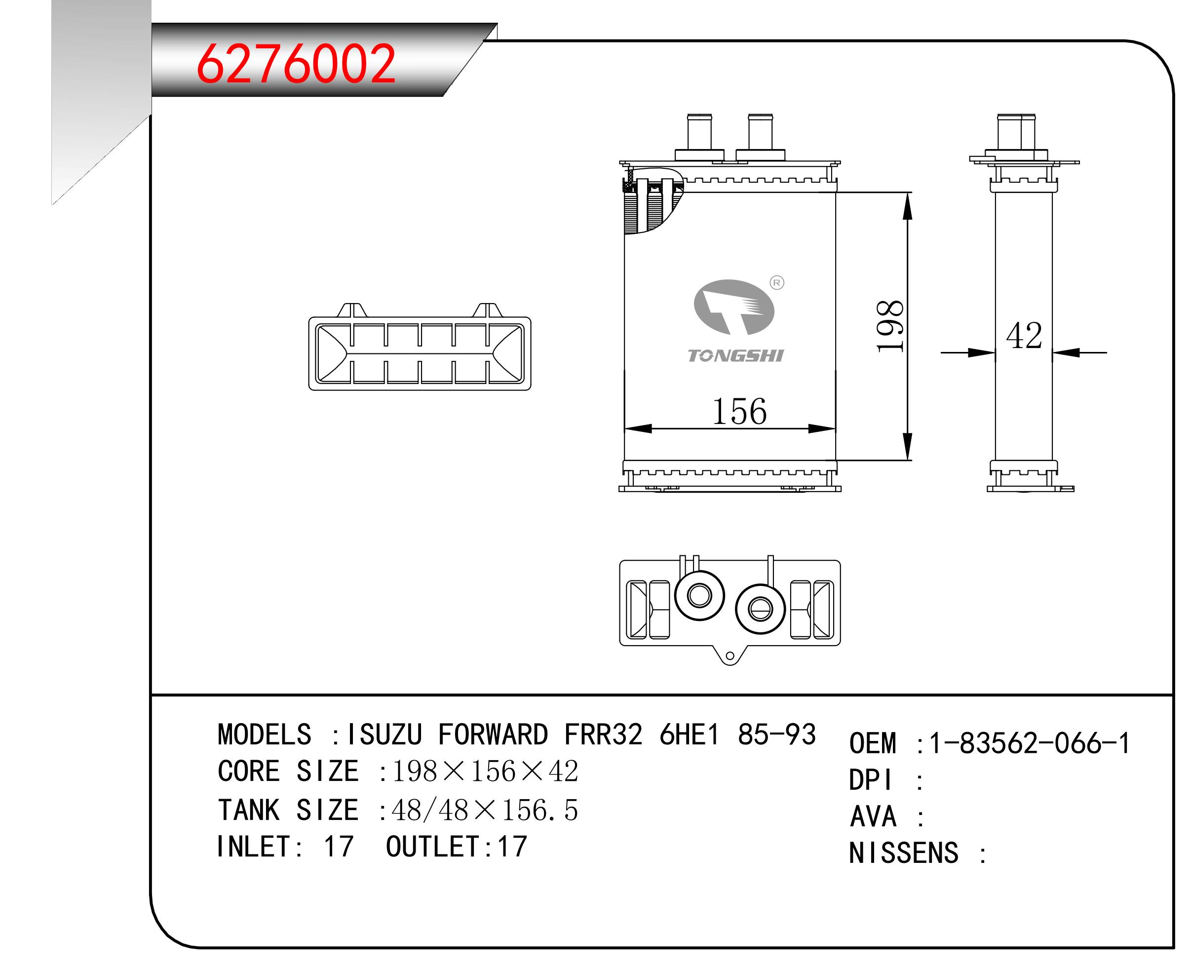 适用于沃尔沃V40 1.9TD D4192T 95- MT散热器
