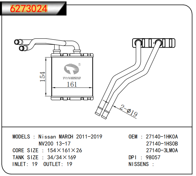 适用于沃尔沃V40 1.9TD D4192T 95- MT散热器