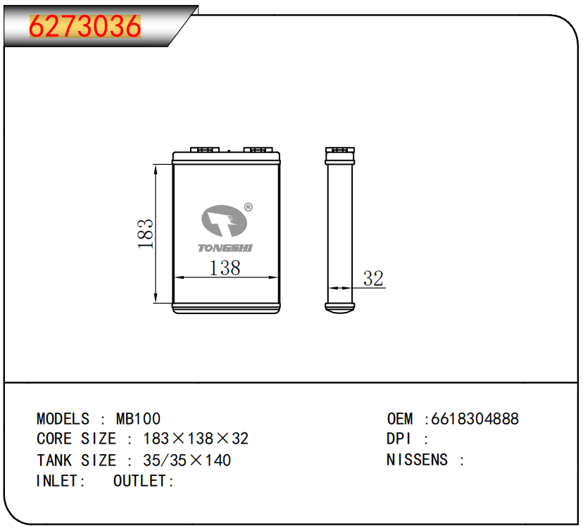 适用于沃尔沃V40 1.9TD D4192T 95- MT散热器