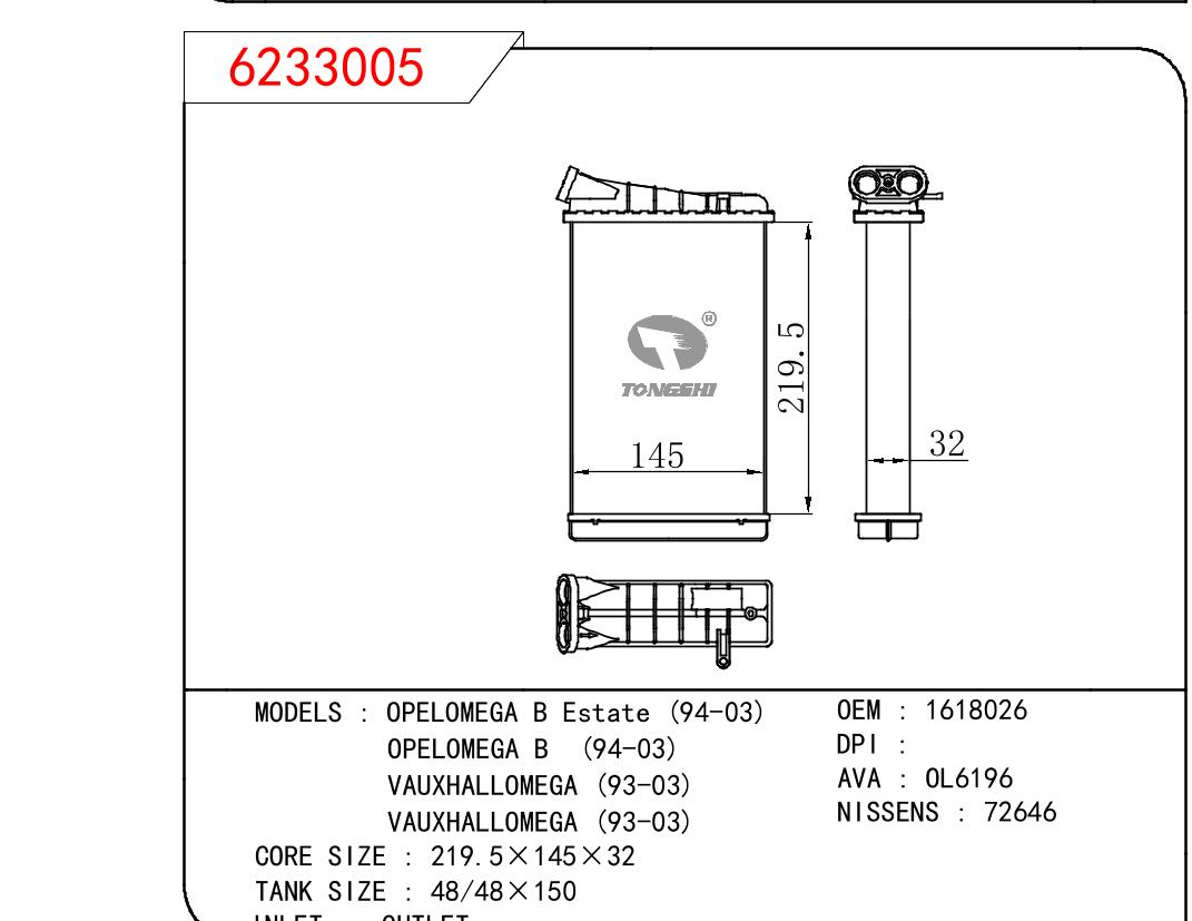 适用于沃尔沃V40 1.9TD D4192T 95- MT散热器