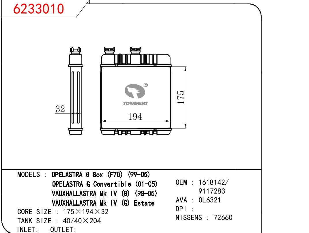 • 芯体尺寸:175*194*32