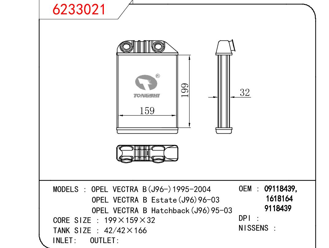 • 芯体尺寸:199*159*32