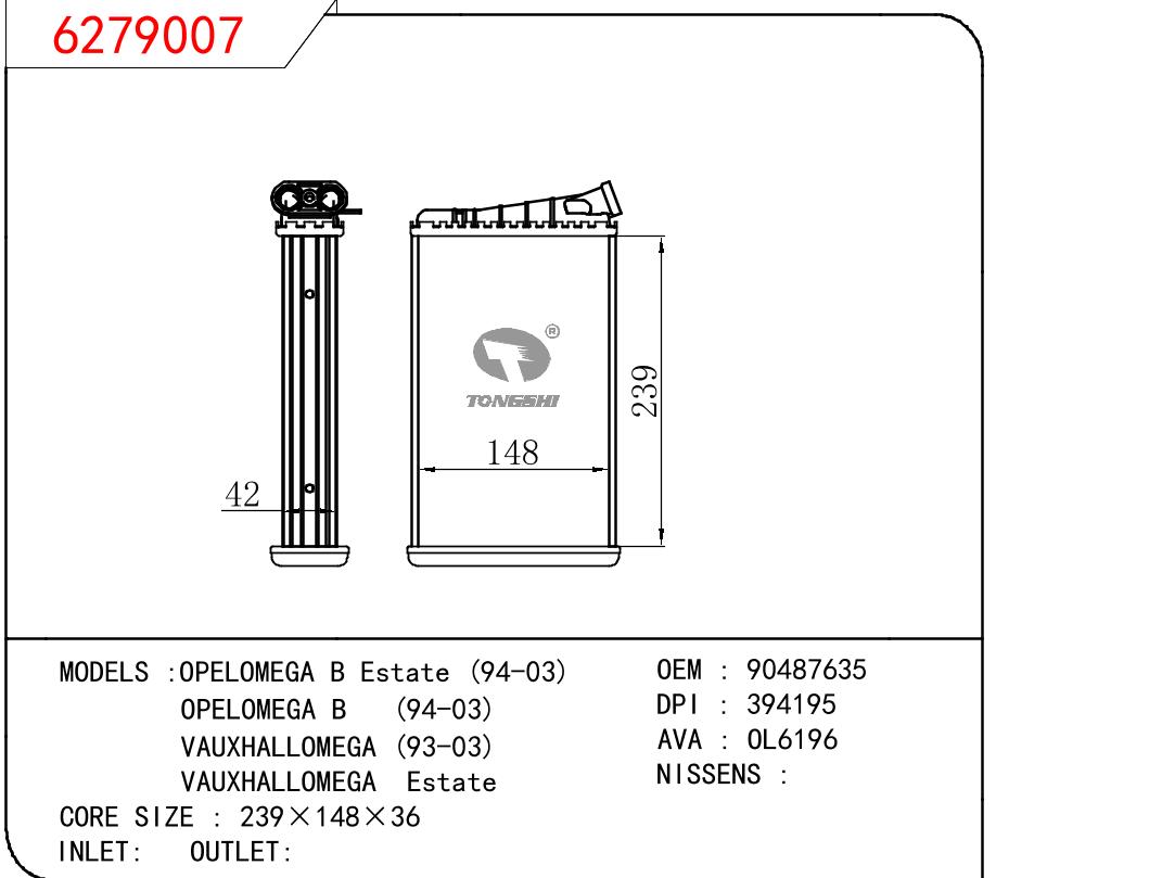 适用于OPEL OPELOMEGA B ESTATE 94-03/OPELOMEGA B 94-03/VAUXHALLOMEGA 93-03/VAUXHALLOMEGA ESTATE OEM:90487635