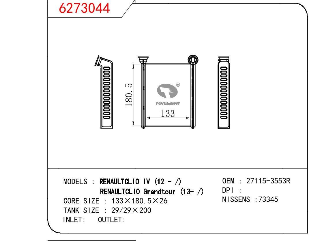 适用于沃尔沃V40 1.9TD D4192T 95- MT散热器