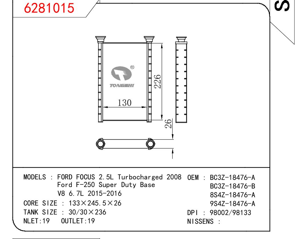 适用于SUBARU FORD FOCUS 2.5L Turbocharged 2008/Ford F-250 Super Duty Base/V8 6.7L 2015-2016 OEM:BC3Z-18476-A/BC3Z-18476-B/8S4Z-18476-A/9S4Z-18476-A