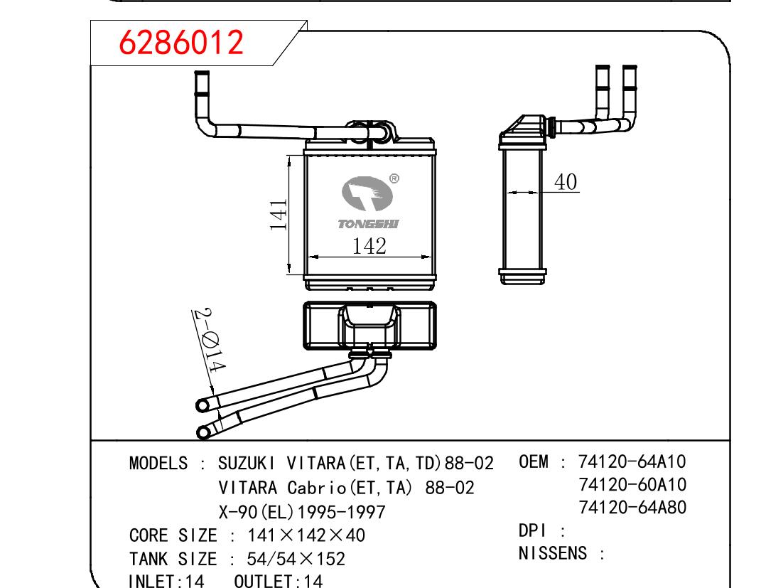 适用于沃尔沃V40 1.9TD D4192T 95- MT散热器