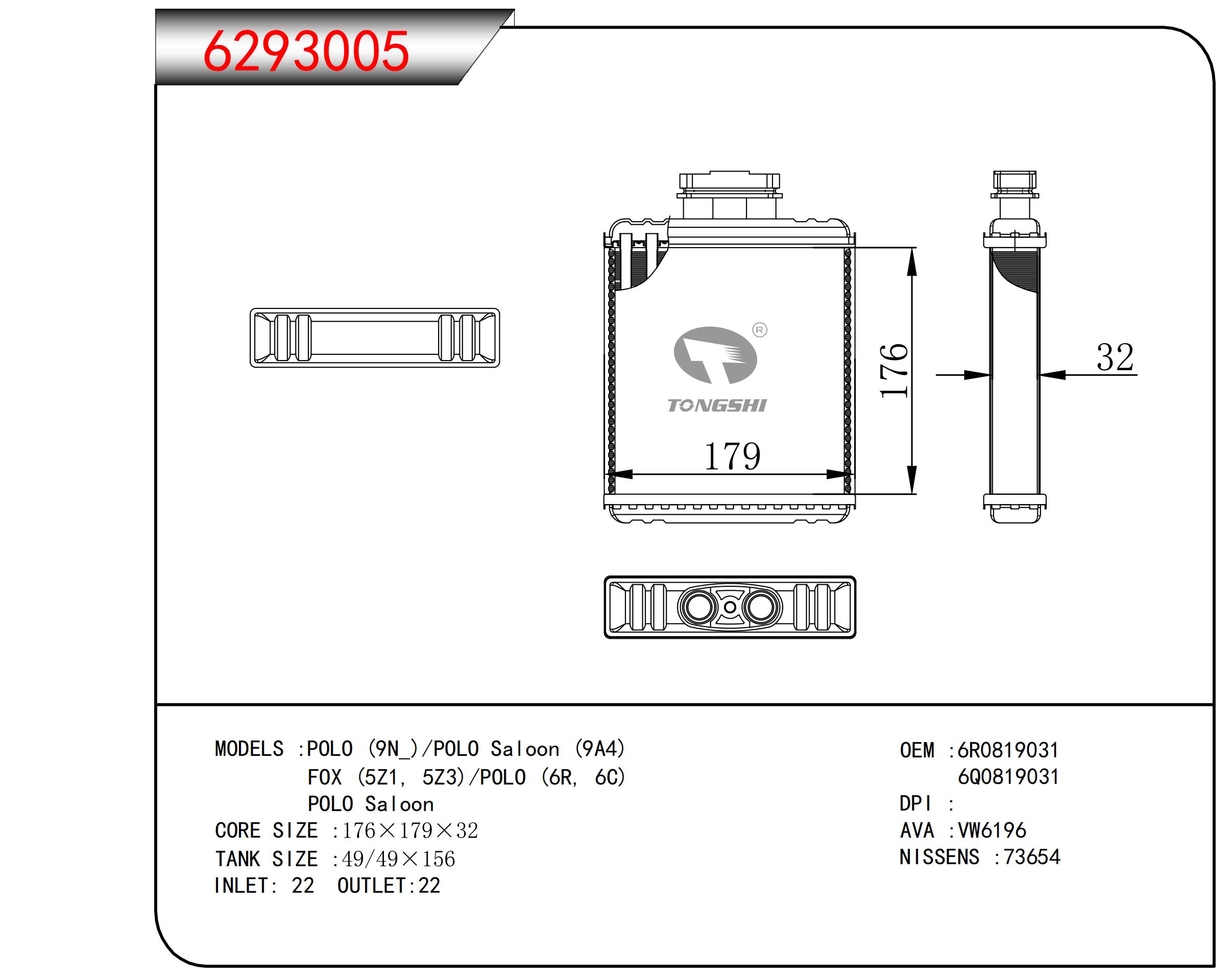 适用于沃尔沃V40 1.9TD D4192T 95- MT散热器