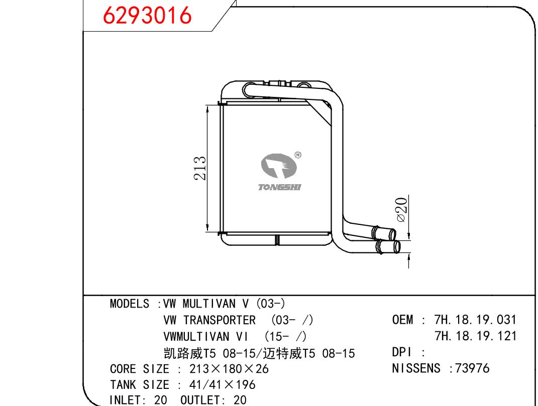 适用于VOLKSWAGEN VW MULTIVAN V 03-/VW TRANSPORTER 03-/VWMULTIVAN VI 15-/凯路威T5 08-15/迈特威T5 08-15 OEM:7H1819031/7H.18.19.121